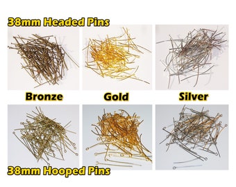 100 38mm 1.5 inch Chandelier Pins Headed or Hooped Chains Crystals Drops Lamp Parts Components Restoration Chrome Brass Antique Finish New